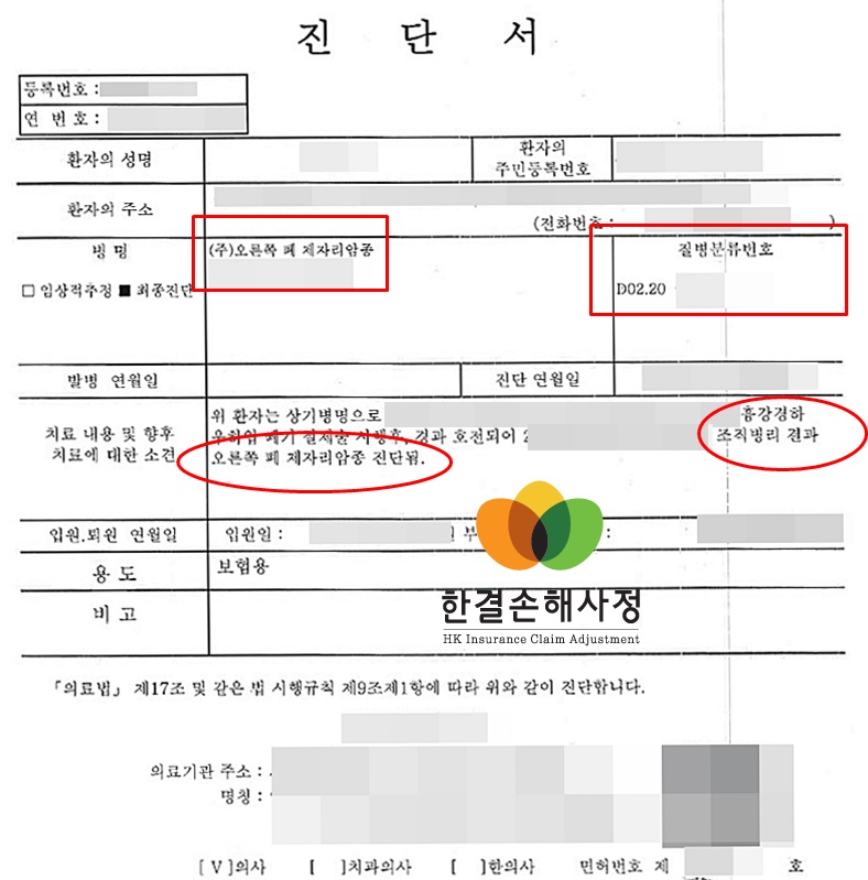 추가 병원의 기록들과 함께 폐암 진단이 된 것이라는 내용을 문서로서 입증하여 진행하였습니다.